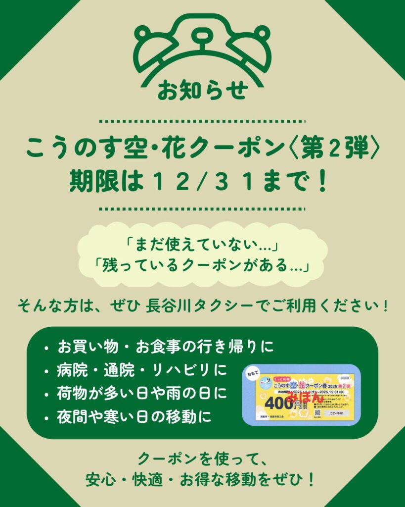 クーポンを使って、安心・快適・お得な移動をぜひ😊